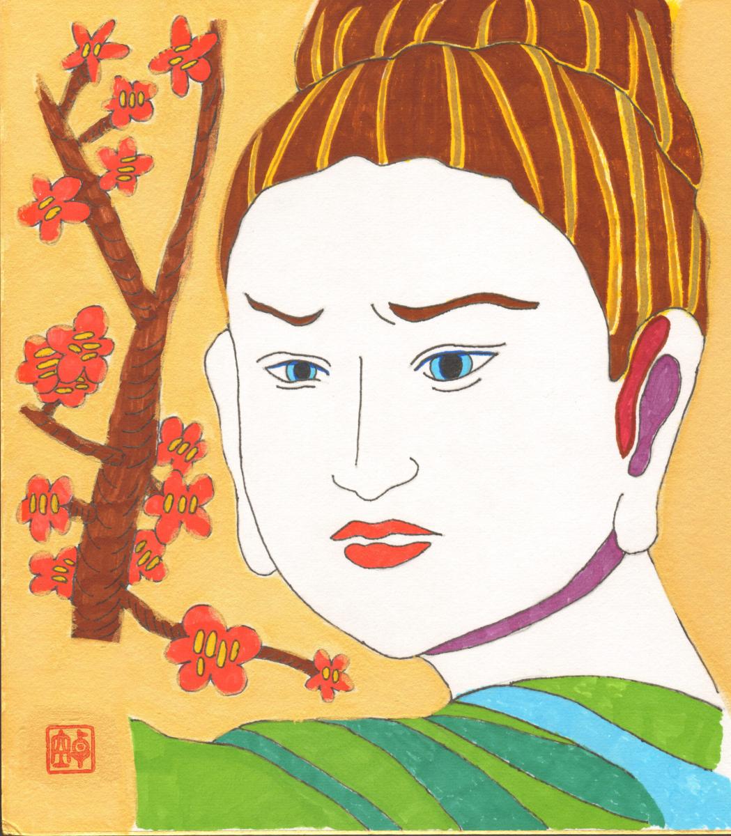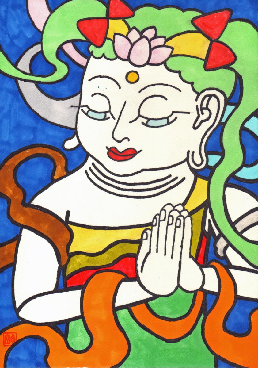 昭和57年生。北九州市在住。自閉症のため人と話せず、難病で視野の96%を失うが、神仏を主なテーマに絵を描く。