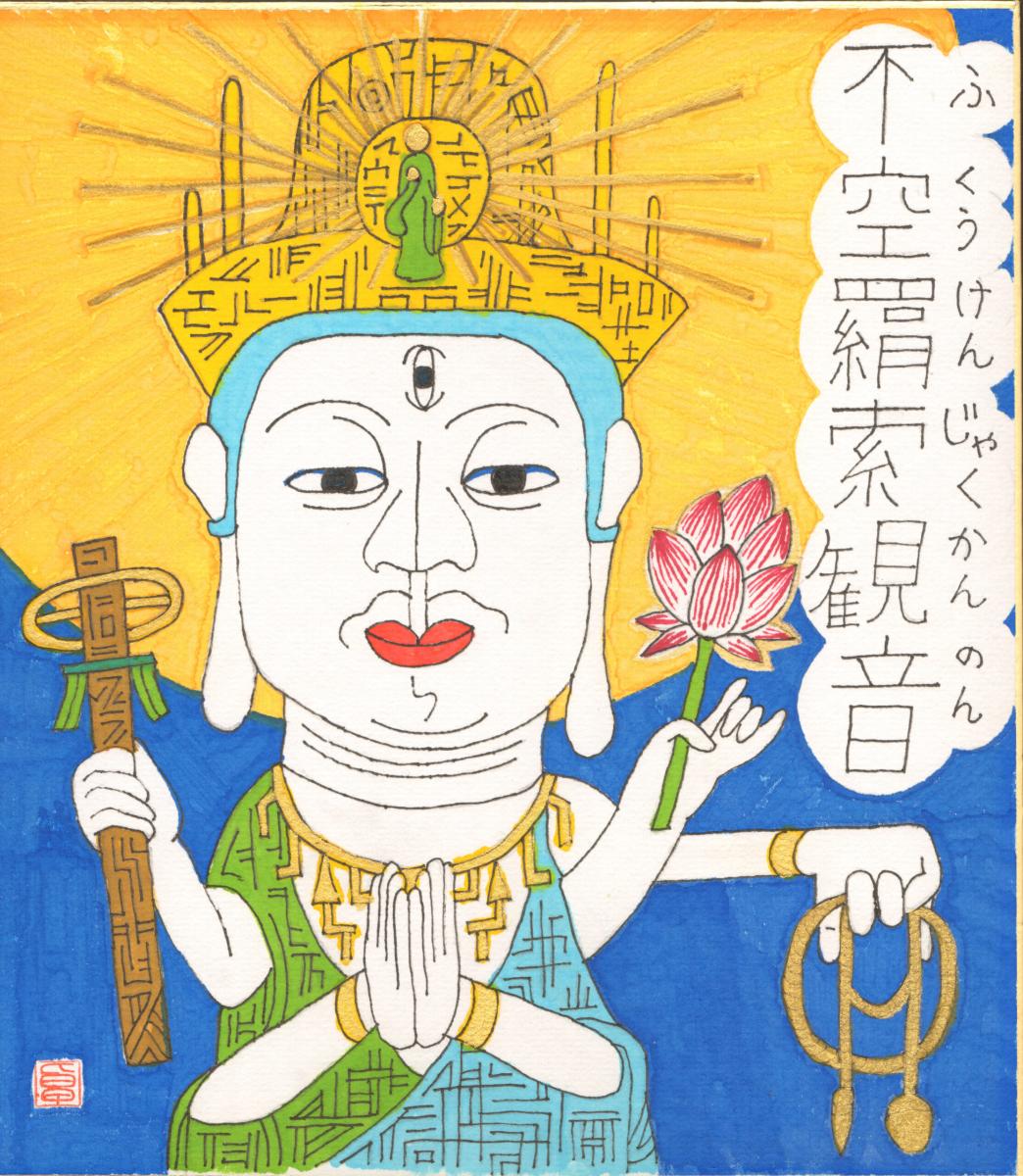 昭和57年生。北九州市在住。自閉症のため人と話せず、難病で視野の96%を失うが、神仏を主なテーマに絵を描く。