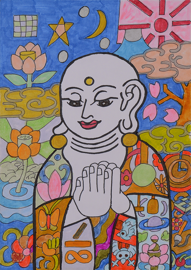 Born in 1982. Residing in Kitakyushu City, Japan. Born with Autisum and unable to communicate with others. Losing 96% of vision with a rare disease, but primarily creates art with themes related to deities and gods.