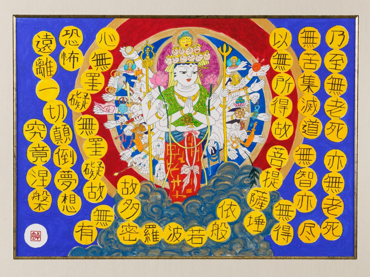 昭和57年生。北九州市在住。自閉症のため人と話せず、難病で視野の96%を失うが、神仏を主なテーマに絵を描く。
